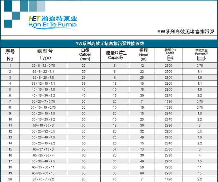 YW系列高效无堵塞排污泵流量范围:8-2600m3/h