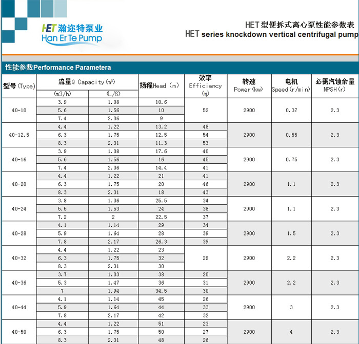 HETGB 系列便拆立式离心泵流量范围:5.3-2000m3/h