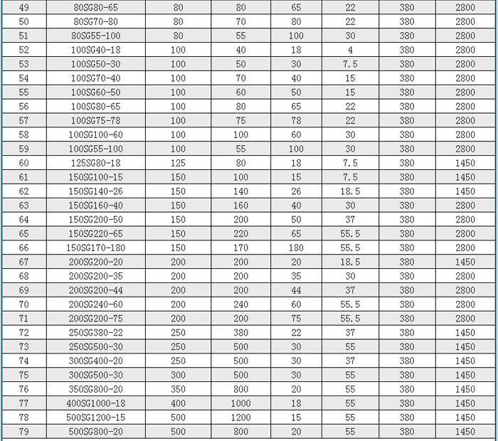 SG 系列管道泵流量范围:0.6-1200m3/h