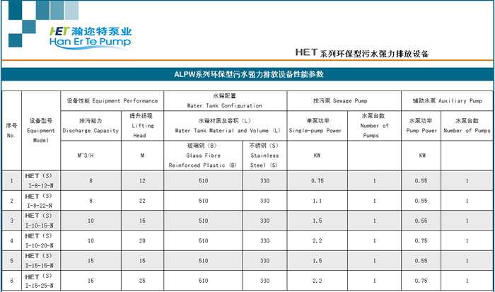 HETPW系列环保型污水强力排放设备流量范围:5-80m3/h